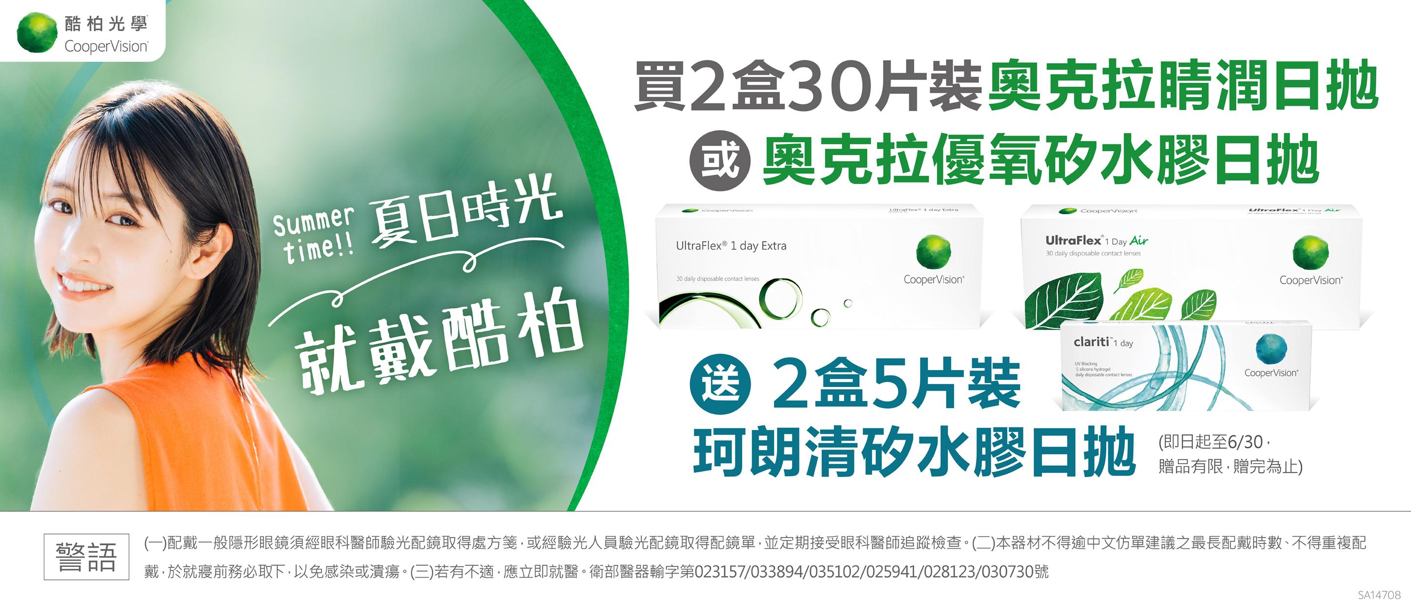 凡至指定通路,購買奧克拉日拋系列同款 2 盒,即送珂朗清矽水膠日拋 2 盒 5 片裝,絕對一試就愛上